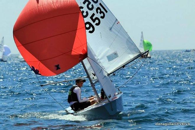 Sam Abel and Hugo Allison (AUS9631) are second overall after six races at the Internatonal Cadet worlds on Italy's Lake Garda. Elena Giolai/Fraglia Vela Riva