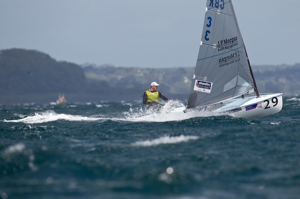 During the 2012 Finn Gold Cup, if any proof was needed that Ben Ainslie (GBR) is at the top of his game, then day three was proof indeed. After dominating and winning both races in the brutal environment of the cold and windy Falmouth Bay, he now takes a 10 point lead over Ed Wright (GBR) and Andrew Mills (GBR) at the half way stage.