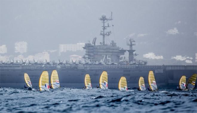 At the 2014 ISAF Sailing World Cup Mallorca the arrival of US military air carrier 'Harry S. Truman' in the bay of Palma transformed the organisation of today’s World Cup racing. The vessel anchored in the bay of Palma with a 1,000 meter restriction area in which no boat can sail and a 2,400 meter area in which it is forbidden to stop.