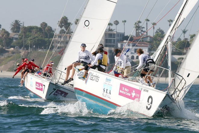 The two instructors for the Nort-U clinic in NZ, Liz Baylis leads Katie Spithill towards the windward mark. Mayor’s Cup Sean Downey -