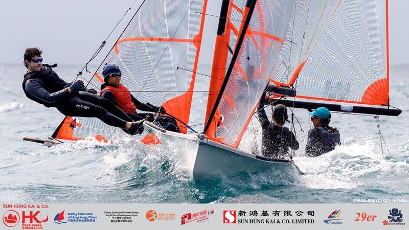 The second day of racing at the Sun Hung Kai & Co. Hong Kong Race Week, incorporating the 2026 29er Asian Championship, saw slightly lighter winds and more manageable conditions compared to Day 1.