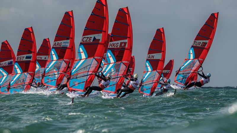 Windsurfers took to the Vilamoura water for the first time on a day of testing conditions at the 2025 Youth Sailing World Championships.