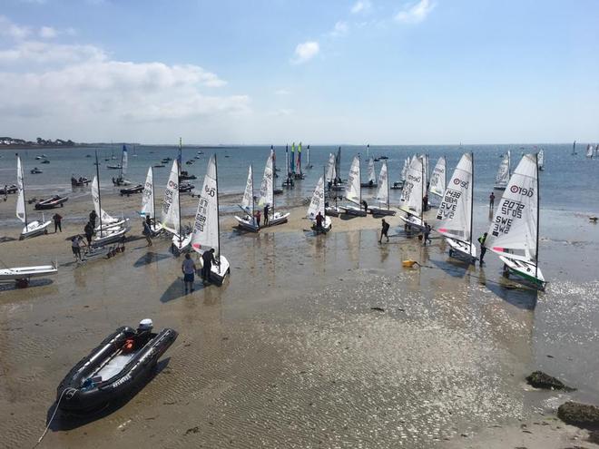 The RS Aero 5 entry has increased again to 17 now with good breeze set for the week. The option to choose rig allows sailors to enjoy their day’s sailing to the max, increases participation (both starting and finishing) and helps keep the fleet safe too. Several sailors changed before the start of the Championship based on forecast with several more ‘re-entering’ with a smaller rig after a testing first day. Those later rig changers will have a challenge to produce a new series having lost Day 1 but having made a large commitment to travel some big distances to Carnac will still be able to enjoy some great racing to the best of their potential in the conditions.