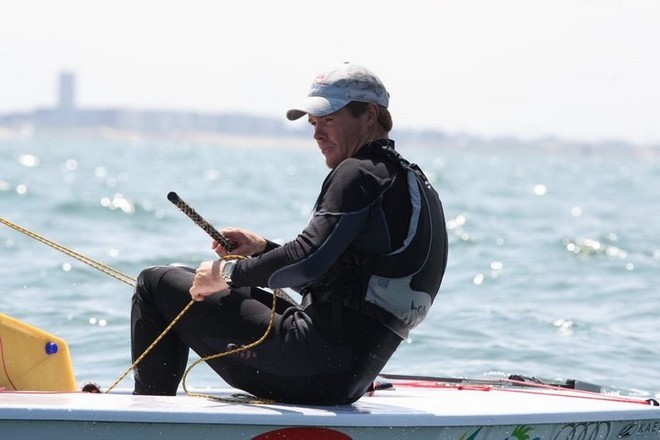 Tom Slingsby leads on Day of the European Championship for Laser Senior in Nieuwpoort, Belgium on July 16, 2008. Photos by Thom Touw. Thom Touw