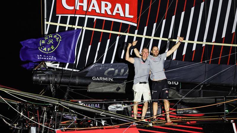 French duo Jérémie Beyou and Morgan Lagravière (Charal 2) took the IMOCA class victory on the TRANSAT CAFÉ L'OR Le Havre Normandie double handed race from Le Havre to Martinque this Friday morning.
