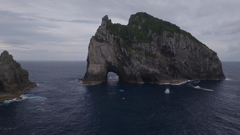 Swim4TheOcean swimmer Jono Ridler swam through Northland's iconic Motukokako Hole in the Rock yesterday evening, a symbolic moment in the 1,000-mile mission to build nationwide support for a healthy ocean and an end to bottom trawling.