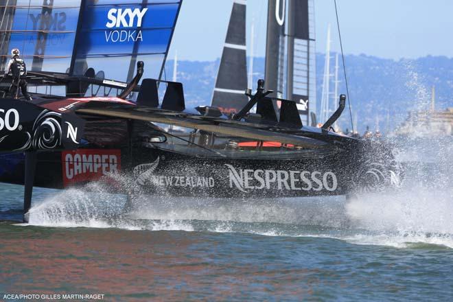 The win in Race 7 was a wire-to-wire performance. The Kiwis started to windward of Oracle Team USA and crossed onto the racecourse riding on their hydrofoils and doing approximately 38 knots. They rounded the first turning mark in the lead and were never threatened the rest of the race.