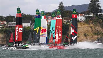Emirates Team NZ's AC45S in the hoist - and not giving away their daggerboard strategy Richard Gladwell