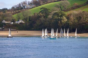 A lovely sunny mild day with a ferocious tide Competitors in the third race of the winter series were greeted by a lovely sunny mild day. The wind was a rather fickle westerly, the tide a ferocious 5.2 metres and there was more weed in the estuary than in Brixton on a Saturday night.