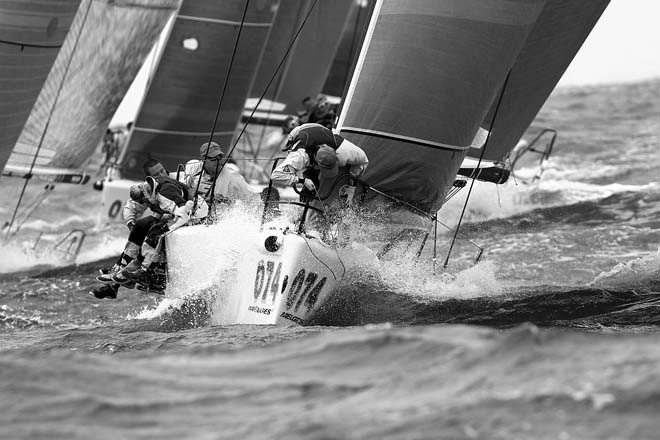 The first day of competition for the Melges 32 Gold Cup, hosted by the Lauderdale Yacht Club in Fort Lauderdale, Florida was ushered in by a steady 15-20 knots of breeze and monster seas. Italy's Roberto Tomasini Grinover's Robertissima 1 with Vasco Vascotto on tactics holds the overall championship lead after aquiring an impressive daily 2-2-3 scoreline. Eleven points behind and in second place, is Jason Carroll's Argo and tactician Cameron Appleton. Andrea Pozzi's Bombarda with Lorenzo Bressani as tactician complete the top three, one slim point behind Carroll.