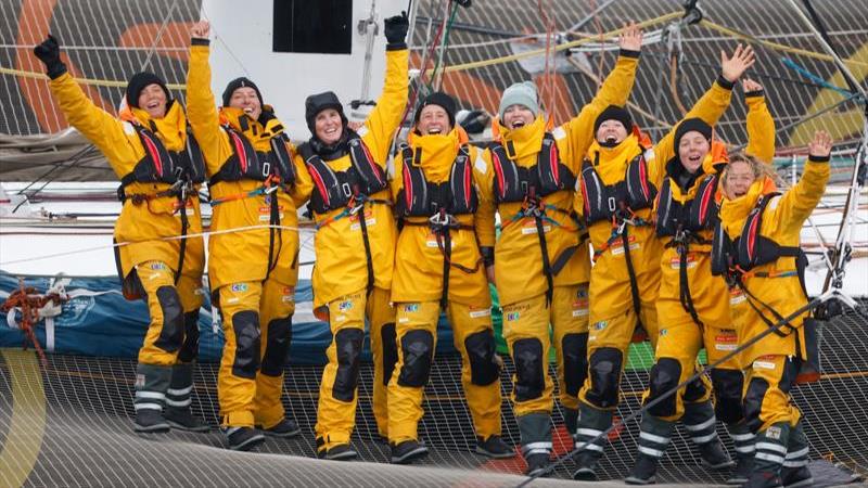 The eight women in The Famous Project CIC team are on day 56 of their race and are nearing the conclusion of a non-stop round-the-world sailing voyage, navigating a series of gear failures and setbacks, including the loss of the use of their mainsail.