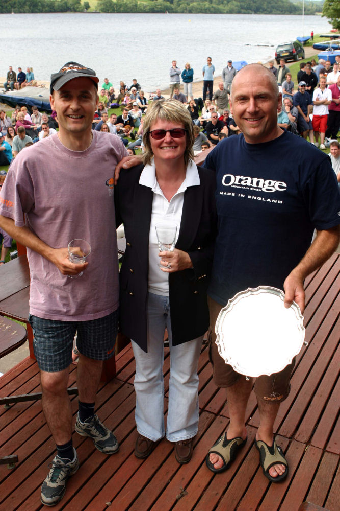 Brothers Lester and Lee Noble soon took the lead in their 49er and were first round the island. They were followed by a bunch of other asymmetric boats – including Musto Skiffs, 49ers and 29ers. They all headed back with spinnakers up for the charge to the North end of the lake. The Noble brothers stretched out their lead to complete the course in one hour twenty minutes, winning the race on handicap. In second and third place on handicap were Musto Skiffs sailed by Ian Trotter of Derwent Reservoir SC and Martin Boatman of Sunderland Yacht Club.