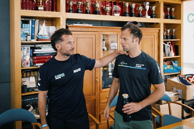 Ambrogio Beccaria, skipper of Allagrande Mapei Racing, and Alan Roberts, Crew of Team Holcim - PRB, following the decision of The International Jury, in the Ocean Race Europe in Alicante, Spain on August 24 © Vincent Curutchet / The Ocean Race Europe 2025