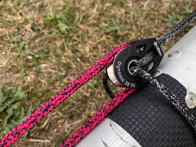 Jib Sheet Secondary Single Block: A2020Ti3 20mm Single Ti3-On Block (spliced to tail end of 3mm Dyneema Primary Jib Sheet).