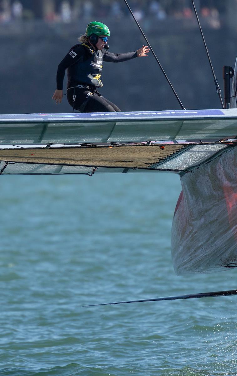 BONDS Flying Roos Driver, CEO and Co-owner Tom Slingsby said, "We'd love to be sailing our boat but we got lucky in Geneva being the team that got to test the light-air foils first. This time SailGP said it's Spain who are testing the 27.5 meter wing so unfortunately we're not in our boat today but we'll be back in it tomorrow for official racing."