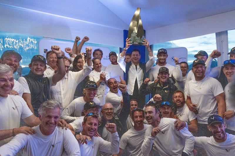 On Saturday evening a packed prize-giving took place within the regatta village on Môle d'Estienne d'Orves, where trophies were presented to the class winners, including the new Edmond de Rothschild Trophy going to the Maxi 1 winner, V, as well as the trophy for the highest-placed International Maxi Association member.