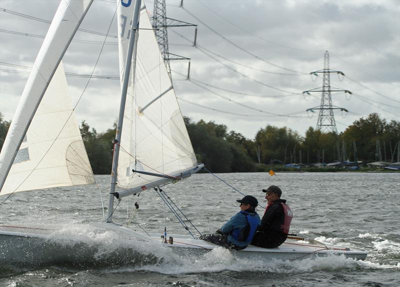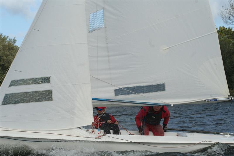 The forecast was for high winds on Saturday and the decision was made during the week to cancel Saturday and hold three races on Sunday. On arrival it looked very sailable though several boats decided the conditions were too much for them and in the end only nine local boats entered, three of them with our cadet members as crew. As we left the shore the big black gusts started to appear across the water and by the start it was quite lively.