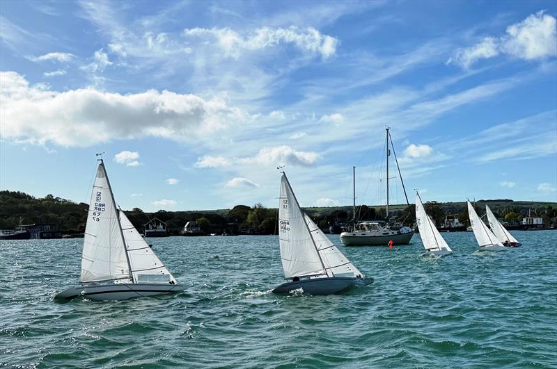 Race two saw Hugh Doherty join the fleet, and at the start Dominic again led the way. He was more at home by now, and the others couldn't catch him. He didn't seem to suffer from not flying a spinnaker (which caused some lively moments for those that did), and increased his lead to win by 20 seconds from Mike I, Caroline, and then Mike T. Hugh retired.