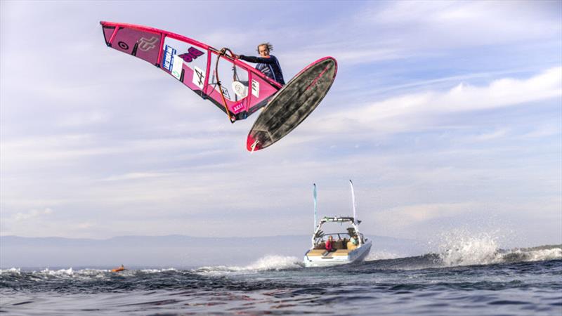 But as the sun began dipping over the city of Geneva, the energy shifted into high gear for what has now become a tradition at this event - a sundowner Tow-In session. With the water glassy and light spilling across the lake, riders launched into tow-in practice, drawing a crowd along the shoreline.