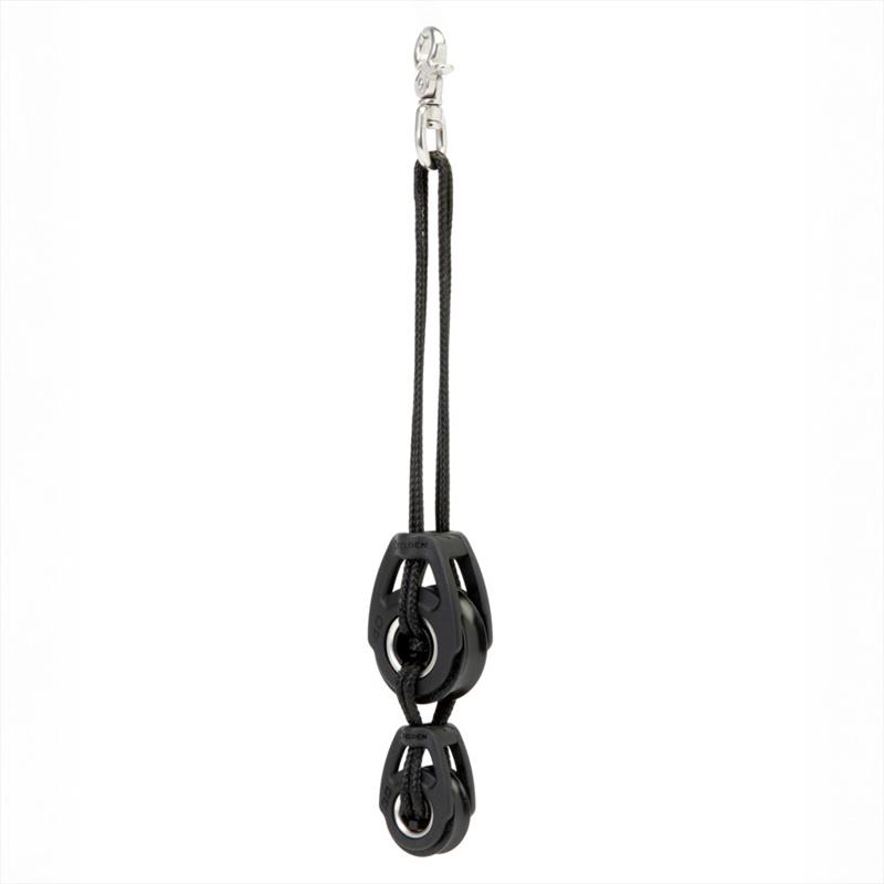 The upper block and snap-shackle are separated 150 mm to reduce the amount of line the sailor needs to manage, making trimming easier and faster.