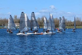 In such light and patchy conditions, clean air was always going to be key. Steve Johnson from Cotswold Sailing Club made the most of his excellent start and led from beginning to end. Andy Jones and Bailey Coulson Bland, both sailing borrowed boats, took second and third places respectively.