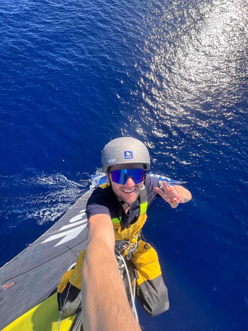 It is 2023's Ocean Fifty winner Thibault Vauchel Camus, sailing this time with Damien Seguin on Solidaires en Péloton who has taken over the lead from Basile Bourgnon and Manu Le Roch on Edenred5 this afternoon. They have chosen to angle west and potentially skirt closer to the light winds than Edenred 5 which remains in stronger breeze but now potentially with more distance to sail.