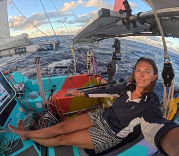 The sole skipper who has significantly diverged from the pack is Pilar Pasanau (PETER PUNK). She chose a more westerly route, leaving Reunion Island to port, but fell into a wind hole and slipped from 4th to 11th place, a stark lesson in the tactical perils of this leg. Since then she has worked hard climbing through the fleet with the longest 24hr runs.