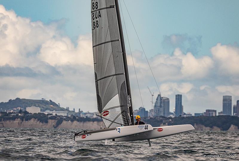 Darren Bundock (AUS) Day 1 - A-Class Catamaran World Championship - Milford - New Zealand - November 11, 2025 © Gordon Upton /