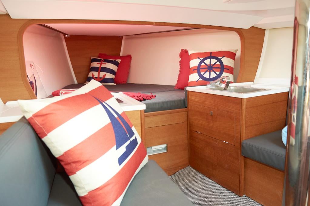 The J/36 makes the most of her interior volume with a comfortable settee dining area, forward-facing nav station, and practical galley. Two double cabins allow guests to rest in privacy and comfort.