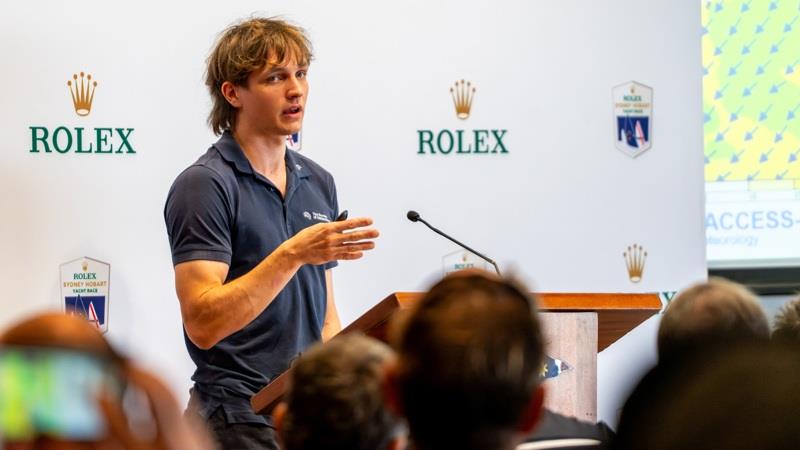 Addressing competitors at the Compulsory Race Briefing at the Cruising Yacht Club of Australia headquarters today, BOM meteorologist, Edward Townsend-Medlock, outlined a forecast dominated by a slow-moving high-pressure system sitting over Tasmania.