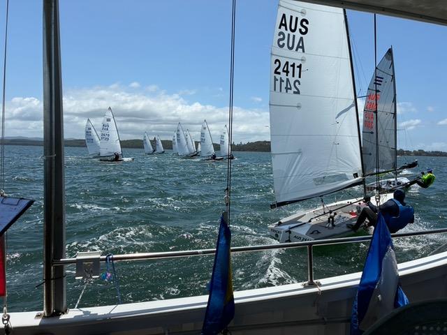 A strong fleet of 34 boats from QLD, NSW, SA, WA, ACT & VIC completed 3 races in light to moderate ESE breeze and building fresh in race 3. Day 1 leader was Geoff Fisher from QLD sailing consistently.