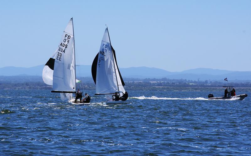 The FDs championship includes 13 boats, racing a triangular course on Lake King at Metung, a rural village in Victoria, Australia.