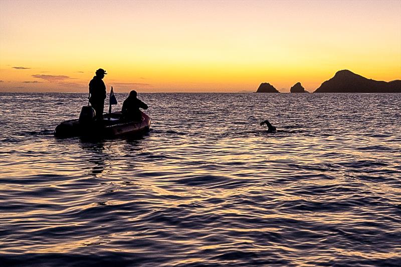 After resting ashore through the middle of the day, the crew headed back out for the second swim, with Jono tracking past Port Charles and towards Little Bay on the eastern coast of the peninsula. Just after 9pm, Jono exited the water and the team transferred to Little Bay for the overnight camp.