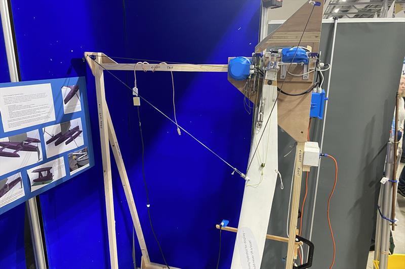 On the AYRS stand at the RYA Dinghy & Watersports Show this weekend there was a new way to mount and use hydrofoils on a sailing boat demonstrated. The core innovation eliminates hydrodynamic loading on the strut of a Tee foil.