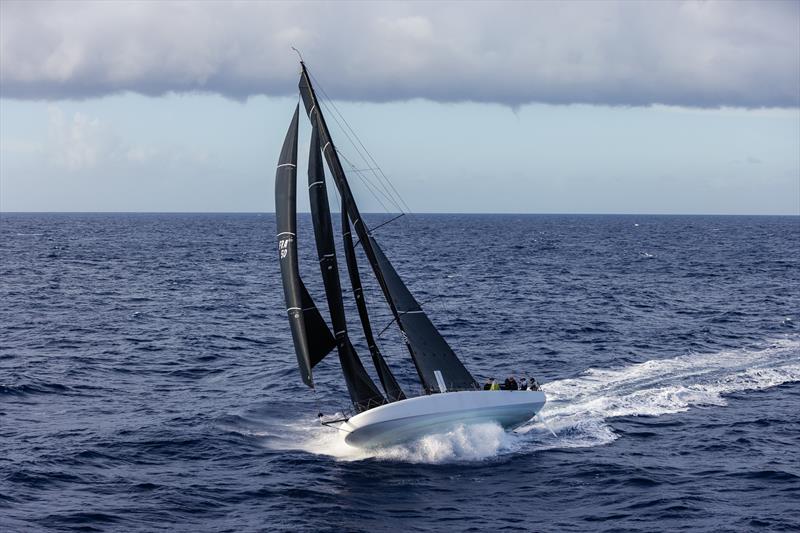 From La Désirade toward Barbuda, Ino Noir found strong downwind pace. "We were flying 18 to 20 knots," Neville said. "However, the breeze eased more than forecast and we got tangled in fishing gear near Barbuda costing time."