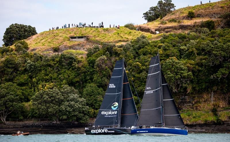 Explore Racing passes North Head, soon after the start of Leg 1 - Doyle Sails Round North Island Two Handed Yacht Race - February 28, 2026 - Auckland © Suellen Hurling / Live Sail Die