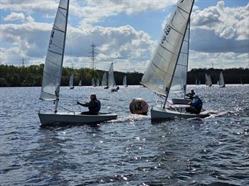 The small but competitive fleet got away first time from the tight start line. Closely packed at the first mark led by Martin Honnor from Ogston SC. There were regular place changes behind but Honnor fought off all challenges to take first place followed by Andy Carter and Steve Denison.