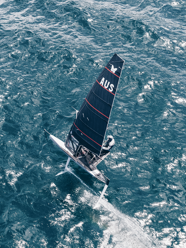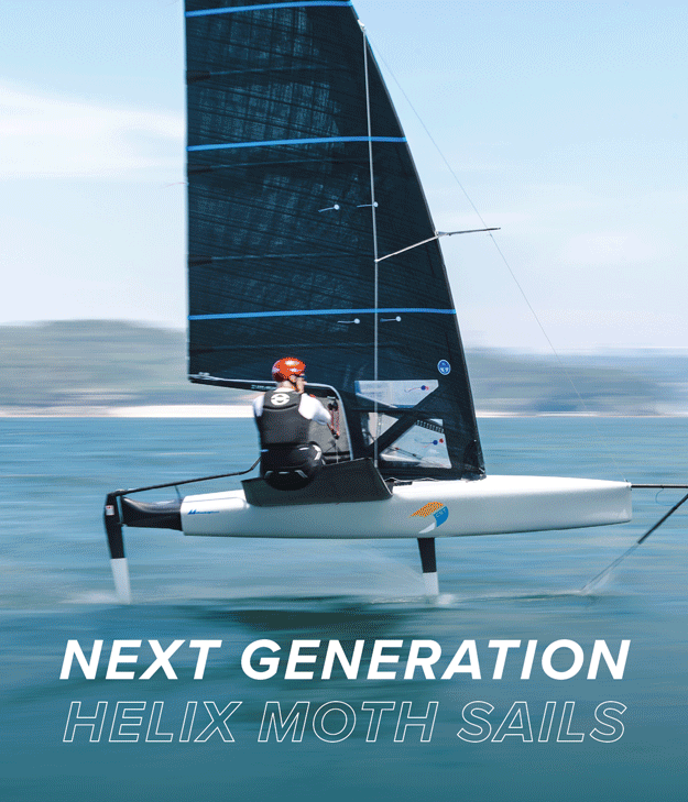 Our new Helix™ Moth sails feature seamless 3Di construction that precisely aligns fiber pathways with true load paths, and a fully molded luff and deck sweeper for America’s Cup–inspired speed, control and stability, establishing the new benchmark for Moth performance.