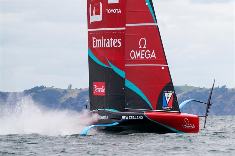 Emirates Team New Zealand continued their second block of testing on Friday in a variable breeze that kicked up into a solid 18kts during the session.