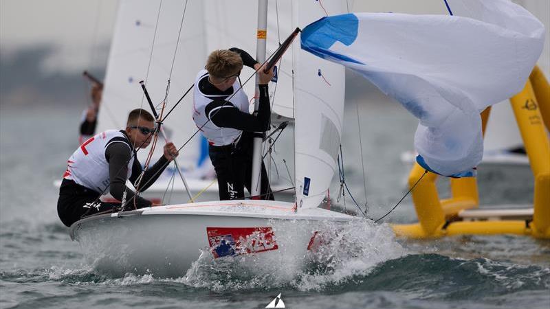 Tessa Clinton and Amelia Higson have started their campaign at the 2025 World Sailing Youth World Championships in the podium places, securing back-to-back fourth places in their first races of the regatta.